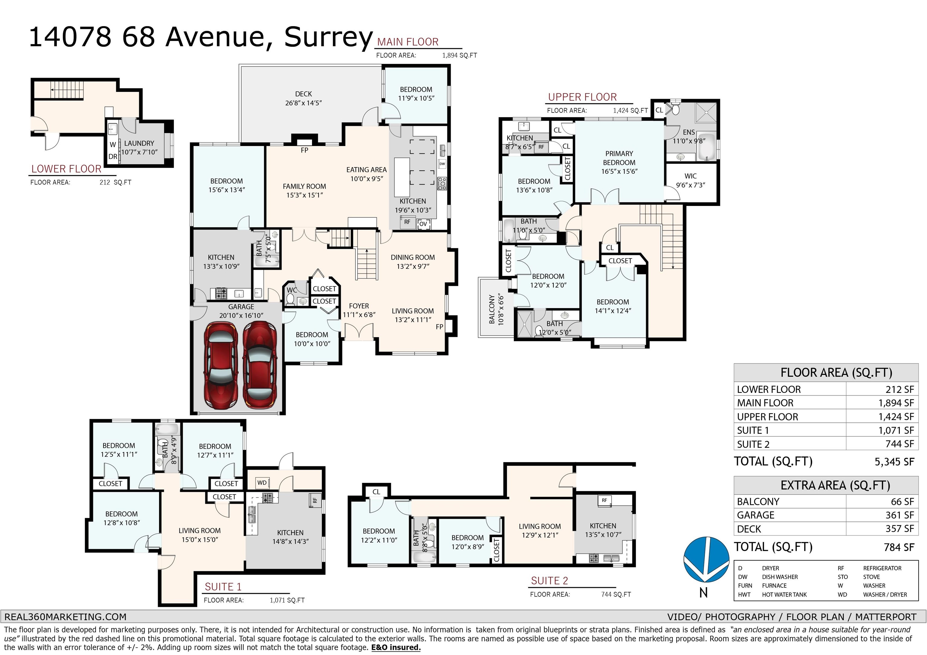 Don’t miss this East Newton beauty offering 9 bedrooms and 7 bathrooms, built over 5,300 sq. ft. on a 7,716 sq. ft. lot! The main floor features a high-ceiling entry foyer, open-concept kitchen with granite countertops, stainless steel appliances, a spacious family room, living room, dining area, and a bedroom perfect for elders. Upstairs has 4 bedrooms, including 3 master bedrooms with ensuites and large closets—the main master includes a Jacuzzi and standing shower. This home also comes with 3 mortgage helper suites (3+2+1), all registered with the City of Surrey. Enjoy gorgeous mountain views from the balcony and added privacy with a greenbelt behind. Located just steps from Georges Vanier Elementary, Hazelwood Park, and minutes to Sullivan Heights Secondary. O/H Sun 8 Jun - 2 to 4 pm !